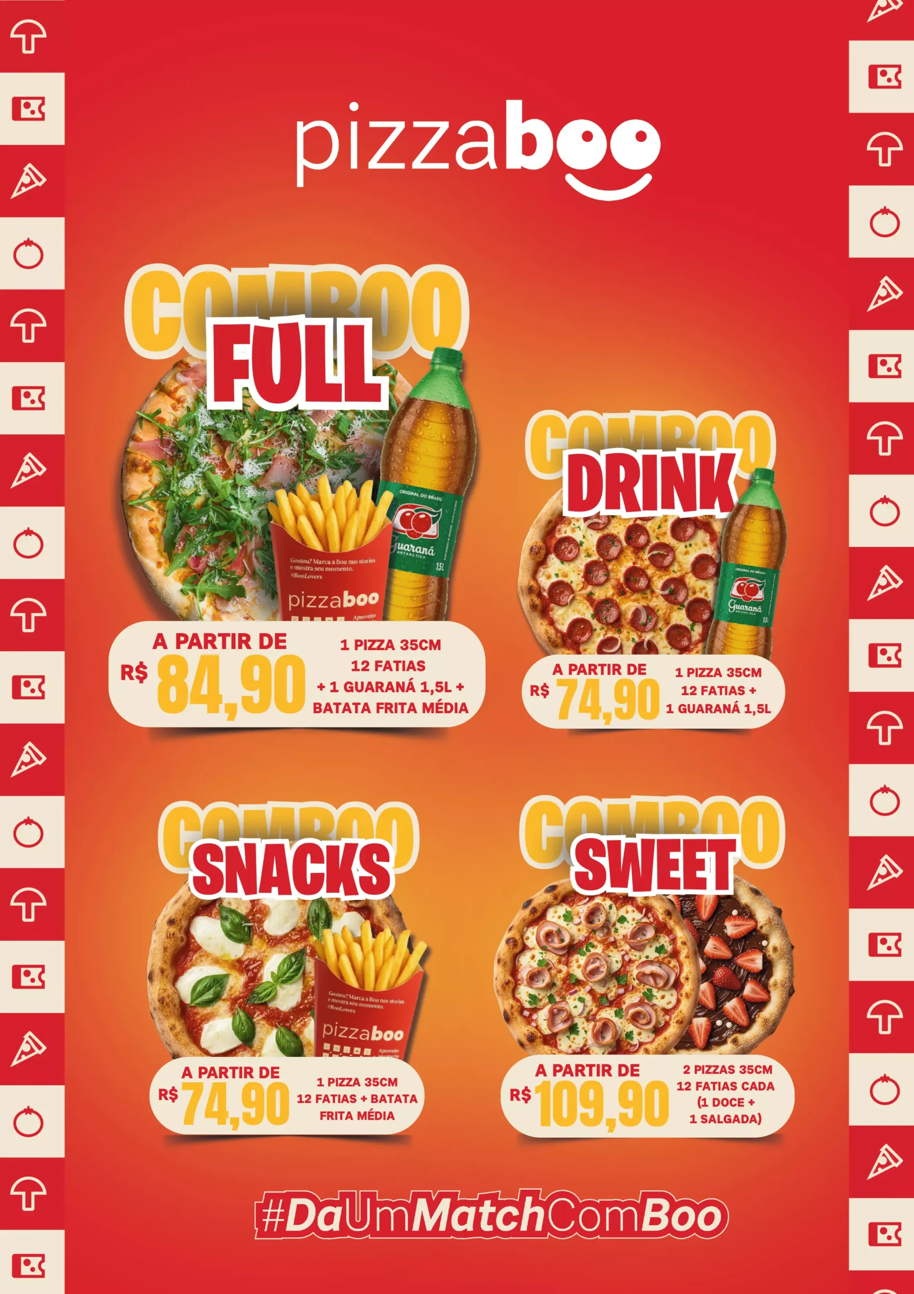 A Pizza Boo nasceu para transformar a noite em experiência: risada solta, mesa cheia, combo generoso, primeira fatia roubada… e o resto da história você vive com a gente 🤤🔥